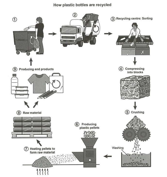 IELTS Writing Task 1: The process for recycling plastic bottles.